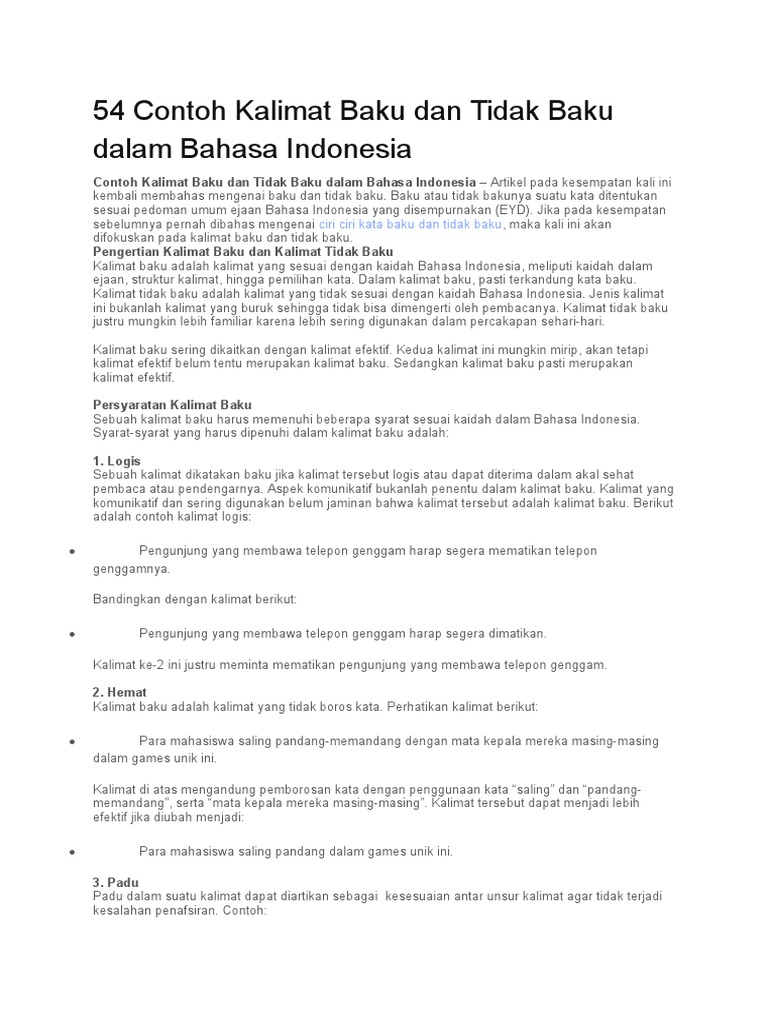 | Lihat 54 Contoh Kalimat Baku Dan Tidak Baku Dalam Bahasa Indonesi1 |